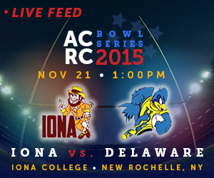 The Iona-Delaware game will be live streamed along with the other matches from Charlotte on the ACRC Bowl Series website. The game will take place midday on Saturday, Nov. 21 at Iona College in New Rochelle, NY.